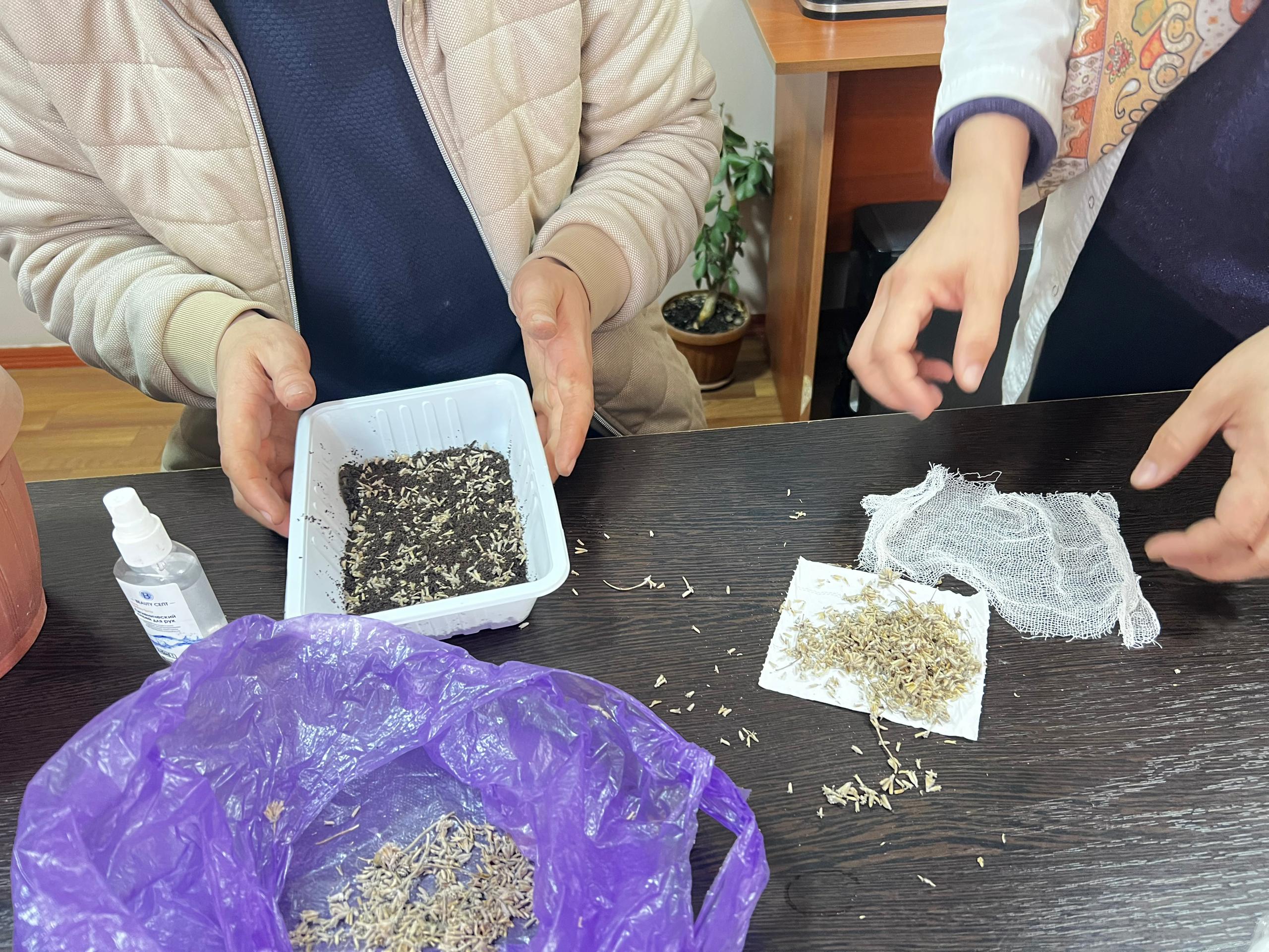 “Өсүмдүктөрдүн биологиялык ар түрдүүлүгү” окуу - илимий лабораториясы | Жыйналып келген уруктардын ичинен эрмен (Artemisia vulgaris), кийик от (Thymus serpyllum), жалбыз (Méntha piperita), саргалдак (Glaucium flavum), көкө мерен (Ziziphora clinopodioides) уругунан эгилип, ал эми ышкынды (Rhéum officinále) тамырынан өстүрүү методдору изилденди | |