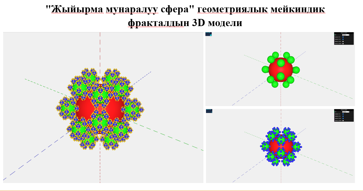 Ош мамлекеттик университети | Геометриялык фракталдардын жаңы түрлөрүн табуу жана 3D моделдерин алуу үчүн компьютердик программала иштелип чыкты. | |