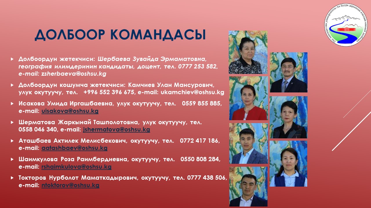 ОшМУ, ТТТАТФ, физгеография, Кыргызстандын географиясы жана ТТК кафедрасы | Жылдык отчет |
