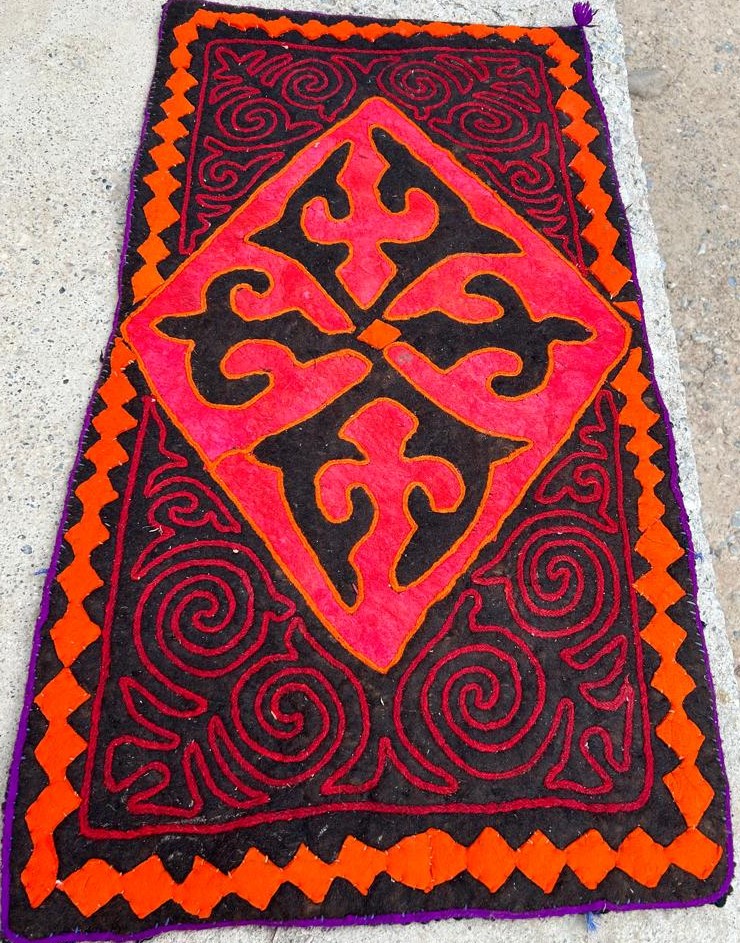 Баткен | Бул аймакта мурда эски техналогияларды колдонуу ыкмалары менен жүндөн жасалган түрлөрдү табийгый таза нерселерден алып өздөрү каалаган жакшы түс менен боёп келишкен. Боёкторду көбүнчө тыттын, өрүктүн пөгүнөн, жангактын кабыгынан, анардын кабыгынан, пияздын кабыгынан алып жасашкан. Мурда боёкту жаңгактан, анардын, пияздын кабыгынан, тыттын же өрүктүн пөгүн алып ,аны кургатып, сокуга салып жанчып, ун формасына келгенде казанга салып ,суу кайнабай туруп, жүндөн жасалган түрлөрдү салып кайнатып,каалаган түстөгү боёктун түрлөрдү алып келишкен Биз изилдөө учурунда мурда эски техналогияларды колдонуу ыкмаларына өзгөчө көңүл буруп, маалымат берүүчүлөрдөн ооз-эки сурамжылоо жүргүзүлүп, аудио-видеого жана сүрөткө (фото) тартылып алынды. | |