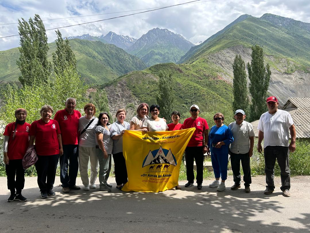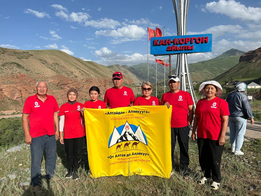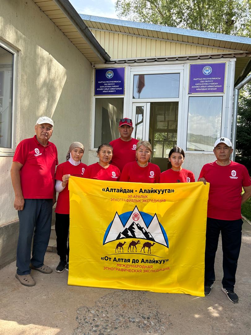 Кара-Кулжа | “Алтайдан – Алайкууга” Эл аралык этнографиялык экспедициясы 2024-жыл 4-июлунан 14- июлуна чейин жүргүзүлдү. Кара–Кулжа районунун Ой-Тал жана Алайкуу айыл өкмөттөрүнүн айылдарында кыргыздардын материалдык жана материалдык эмес маданияттары боюнча илимий этнографиялык изилдөөлөр жүргүзүлдү. “Алтайдан -Алайкууга“ Эл аралык этнографиялык экспедицияга Кыргыстандын жана Россиянын Алтай мамлекеттик университетинин доцент Назаров И.И, Тоолуу Алтай университетинен доценттер Сарыбашева С,Кыдыева В, Кыргыстандын Ж.Баласагын атындагы Улуттук университетинен тид профессор Бикбулатова А,доценттер Асанов Т,Султаналиева Н Кыргызстан Эл аралык университетинин проректору, доцент Өмүрзакова Ж, Кыргыз улуттук илимдер академиясынан Жапаров А,доцент Жолдошев Р. Жана башка көрүнүктүү илимпоздору этнографтары, этносоциологтору,лингивисттери катышты. изилдөө обьектиси Ой- Тал айыл өкмөтүнүн - Ой–Тал, Көңдүк айылдарына, Алайкуу айыл өкмөтүнүн - Кайың–Талаа, Кызыл–Жар, Күйө-Таш, Коо-Чаты, Көк-Арт, Кан-Коргон, Сай-Талаа айылдарына “Алтайдан Алайкууга“ Эл аралык этнографиялык экспедиция жүргүзүлдү. Бул аймактан илимий этнографиялык изилдөөлөр жүргүзүү мезгилинде баалуу материалдар жыйналып, сүрөт,аудио- видеолорго тартылып алынды. | |