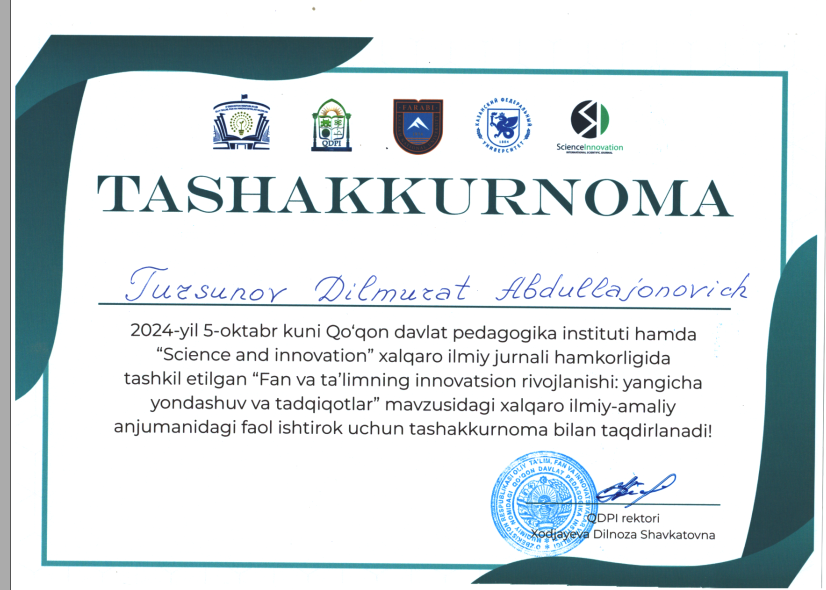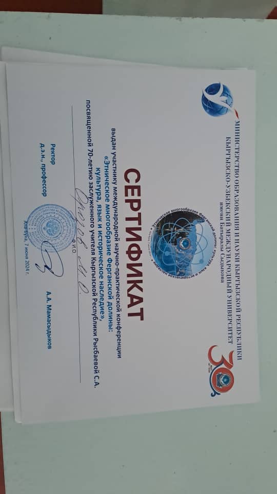 | 4 | 4) Бисингулярдык маселелердин чыгарылыштарынын тургузуунун жаңы алгоритмдерин иштеп чыгуу | 1) 2024-жылдын 5- октябрында Коканд мамлекеттик педагогикалык институтунда конок лектор катарында | 2024-11-30 0000-00-00 |