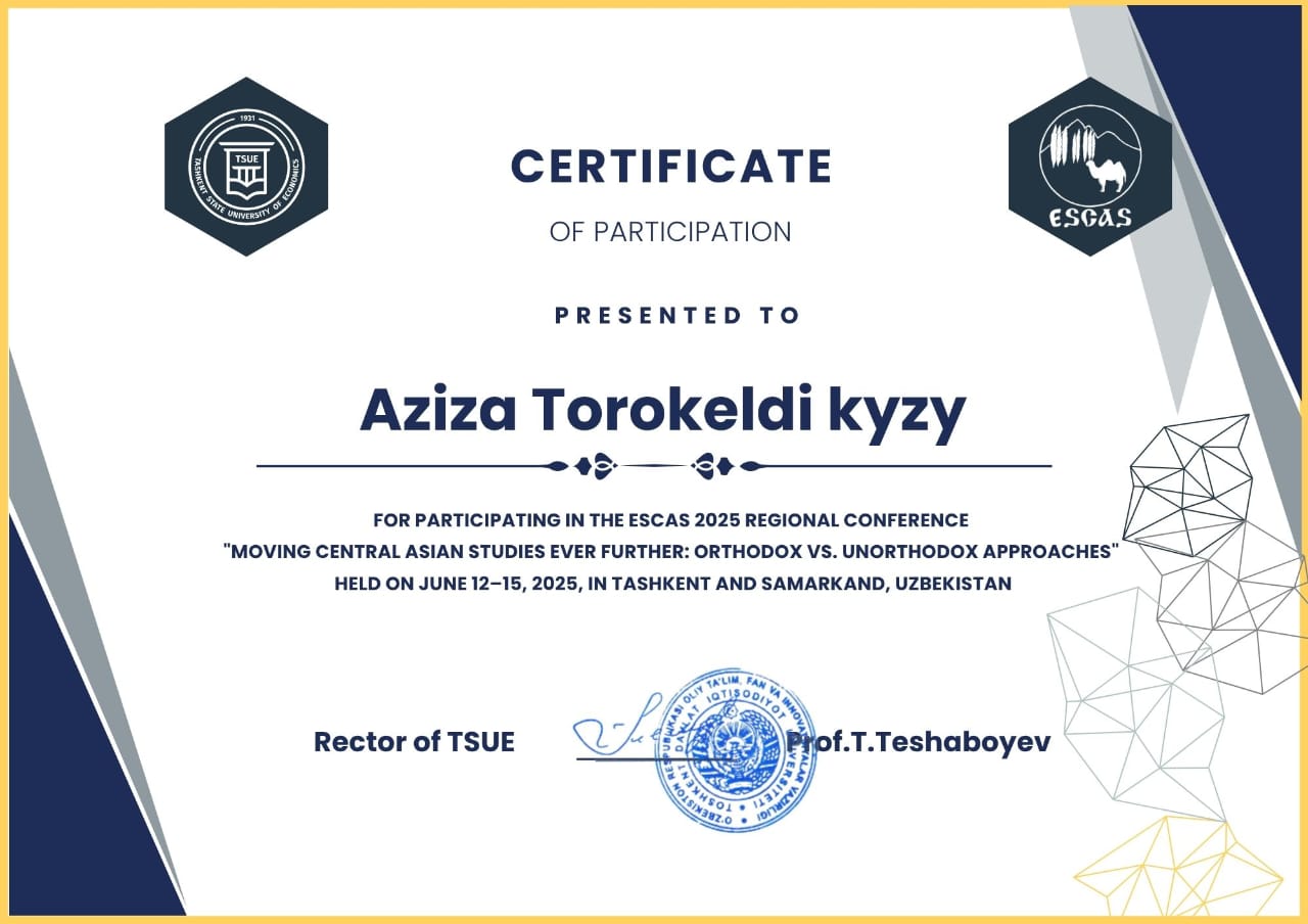 Анкетирлоо жана интервьлор алынды, макаланын теориялык болугунун драфт варианты даярдалды, 2025-жылдын июнь айында Борбордук Азияны изилдоо боюнча Европа коомчулугу уюму жана Ташкент мамлекеттик экономикалык университети тарабынан уюштурулуп жаткан эл аралык конференцияга чакыруу кагазын алдык |